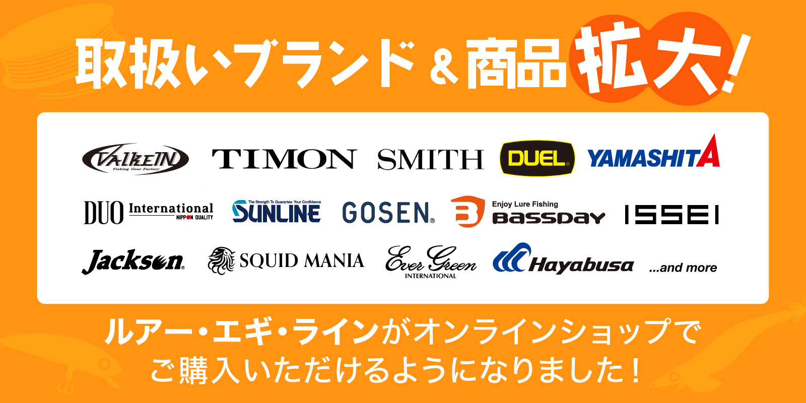 エギ・トラウトルアー・ショアソルトルアー・ラインのメーカー商品が、ご購入いただけるようになりました。
