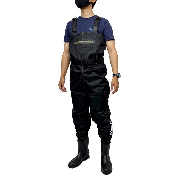 擦れなどに強く丈夫な210DナイロンオックスPVCを採用したチェストハイウェーダー。胸まで長さがあり、波しぶき等で濡れにくく、内側は蒸れにくい裏メッシュ仕様。フェルトピンタイプは苔の多い場所や岩場で活躍します。